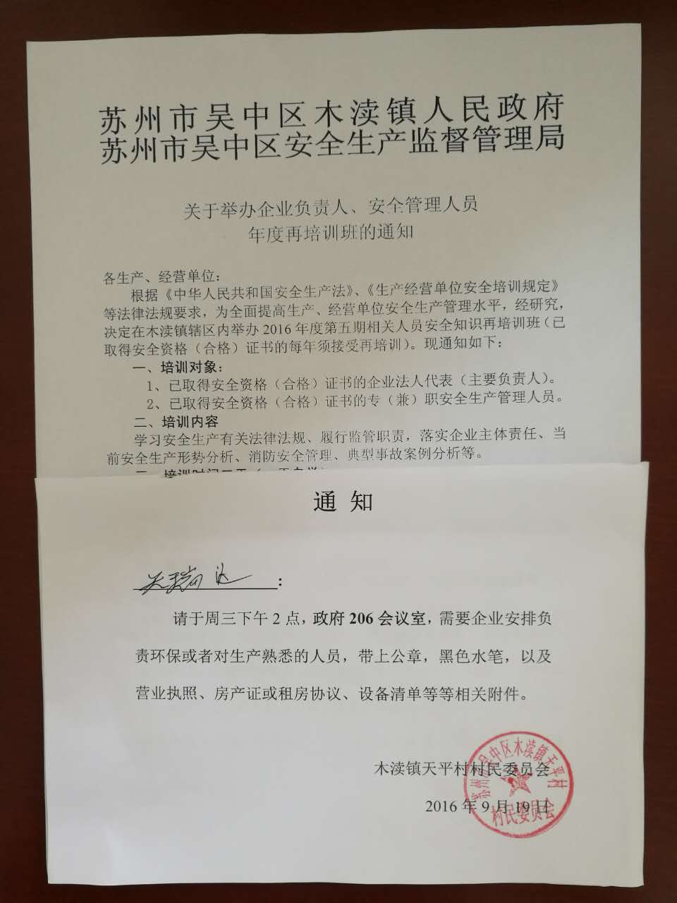 關(guān)于蘇州市吳中區(qū)木瀆鎮(zhèn)人民政府,蘇州市吳中區(qū)安全生產(chǎn)監(jiān)督管理局舉辦企業(yè)負(fù)責(zé)人,安全管理人員年度再培訓(xùn)班的通知