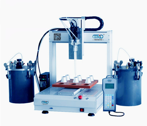 雙液點膠機事倍功半,又被稱為AB點膠機,AB自動點膠機,AB上膠機,是一種專業用以點雙組份膠水的設備,同一般雙液點膠機擁有 顯著的差別,先AB點膠機有兩個料桶,在其中A料桶用以裝本膠,B料桶用以裝金屬催化劑,當A膠碰到金屬催化劑時,膠水才剛開始固化。
