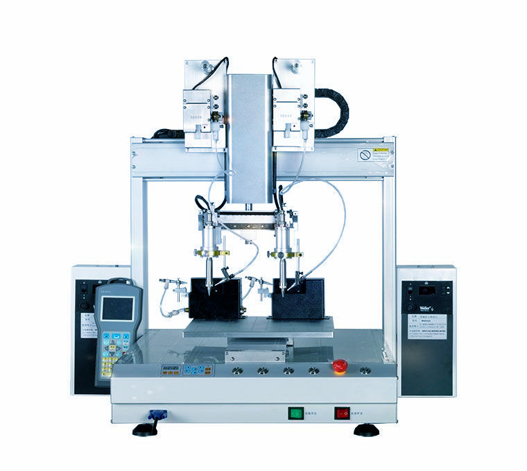 自動焊錫機編程方法簡單方便,可直接輸入焊點坐標,實現在線或離線編程,并顯示和再現焊點位置坐標。示教程序操作簡單,只需對示教盒進行簡單操作即可。空間中任何焊點位置的操作人員都沒有特殊的技術和專業要求,使得編輯操作更加人性化。焊接機器人具有靈活多樣的焊接方法。本自動焊機的烙鐵部件可任意角度、任意方向調節,并可360度自由旋轉。實現焊接作業的多樣化。