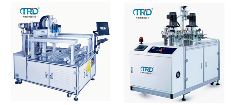 (2)半自動型灌膠機,此類灌膠機可實現(xiàn)于膠水各種比例自動配比,但此類型的灌膠機不帶運動控制平臺,直接將膠注入要灌的產(chǎn)品中,一般適用于LED節(jié)能燈,電源。
