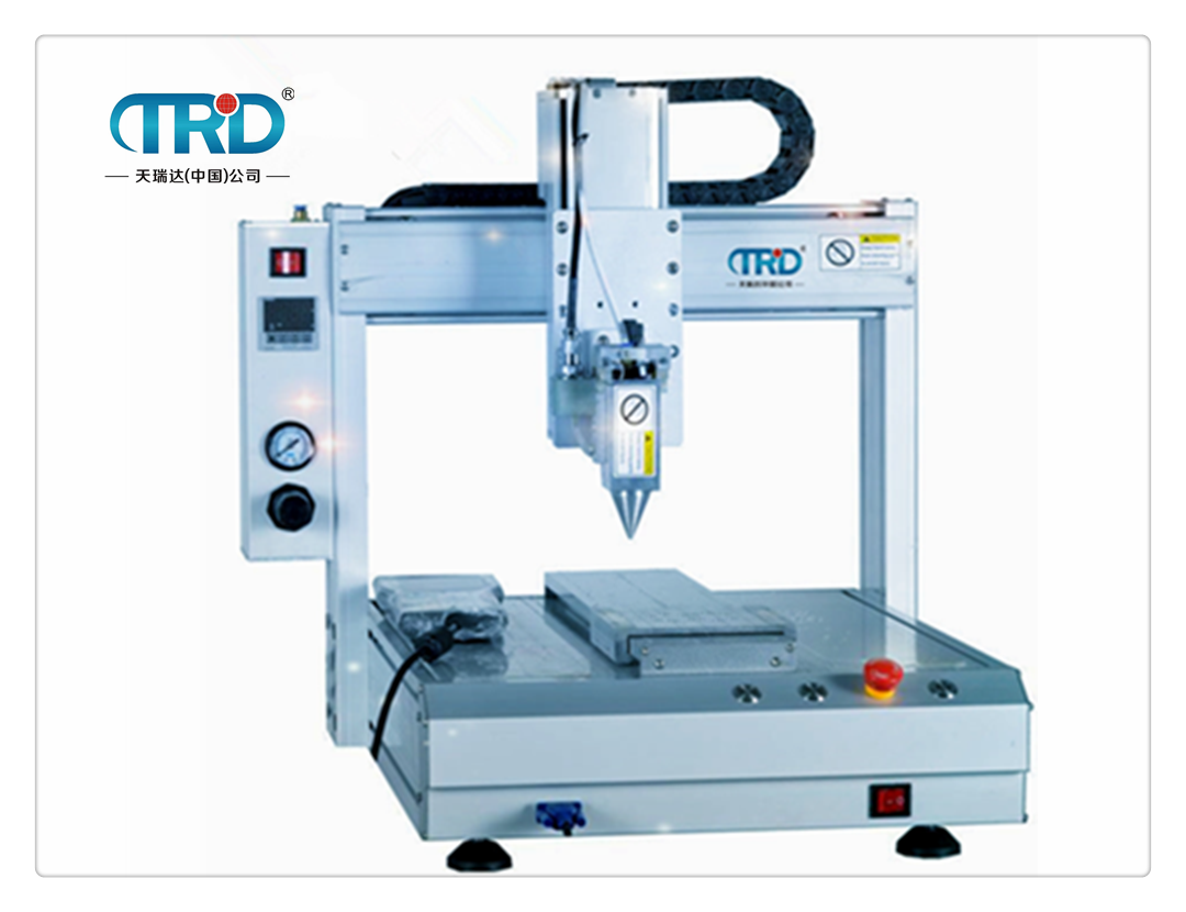 TB-3210F三軸自動點膠機可對各種工件進行自動點膠作業。解決了人工重復性點膠動作出現的點膠不均勻等現象。并可以提升效率,節省人力。可替代人工特定的點膠作業,實現機械化生產。自動點膠機操作簡單,生產效率高、點膠質量好、環保又節能、初學者也能達到熟練工人的點膠效果。本機采用簡易快速地輸入點膠程序,其軟件并具有強大的編輯功能,可輕易、快速的完成程序教導。