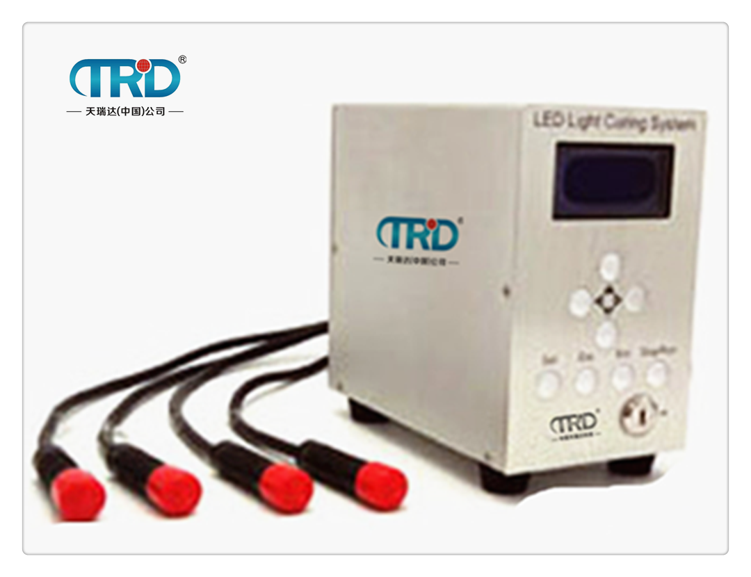 天瑞達TUV-D401紫外線標準4頭UV點光源固化設備,通過電→光能量的轉換使LED(國外進口)大功率紫外線二極管芯片產生的高純度 365、385、395、405 等波段的紫外光,能量高度集中在紫外膠固化,油墨干燥所需要的波長段,是傳統光纖高壓汞燈式點光源機的換代產品。適用于 手機元件裝配、馬達及元件裝配、半導體芯片等