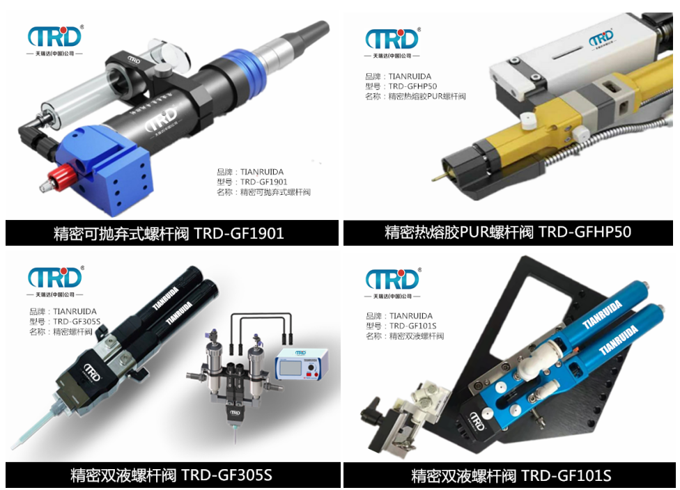 產(chǎn)品介紹TRD-GF305S精密雙液螺桿閥為精密、可重復(fù)性點涂而設(shè)計,通過結(jié)合螺旋供料技術(shù),點膠時間、針筒壓力以及螺桿速度的精確控制,確保穩(wěn)定一致的粘結(jié),密封等效果。精確重復(fù)的點膠輸出、精密耐用的供料螺桿,可代替人工特定的點膠作業(yè),實現(xiàn)機(jī)械自動化的生產(chǎn)。